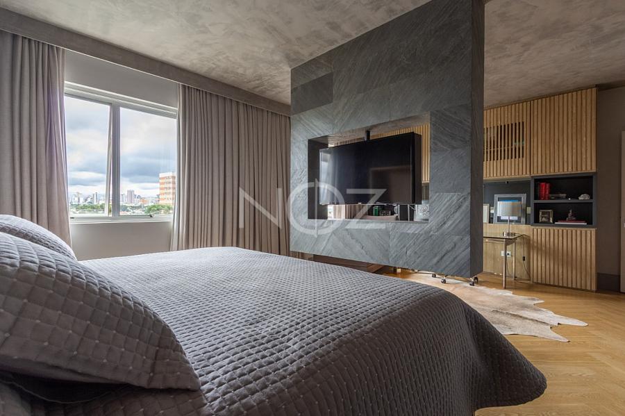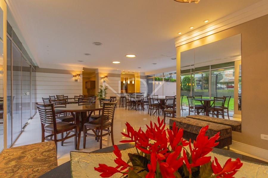 Esse apartamento é para quem prioriza integração de ambientes com conforto, automação e sofisticação em cada detalhe. Localizado em uma das ruas mais charmosas do Batel, a antiga planta antes de 3 quartos se transformou em 2 suítes geniais, ampliando assim a sala em um living de estar aconchegante e personalizado. Com projeto arquitetônico do escritório Arch Lab, com acabamentos e detalhes inteligentes e com materiais de primeira como: piso Porto Bello, cozinha Kitchens com pedras em silestone, ar condicionado Fujitsu e banheiros em mármore travertino. Possui uma ótima varanda que pega muito sol, o apartamento inteiro é claro e ensolarado, face norte! 2 vagas de garagem e o condomínio conta com portaria 24 horas e salão de festas revitalizado.
